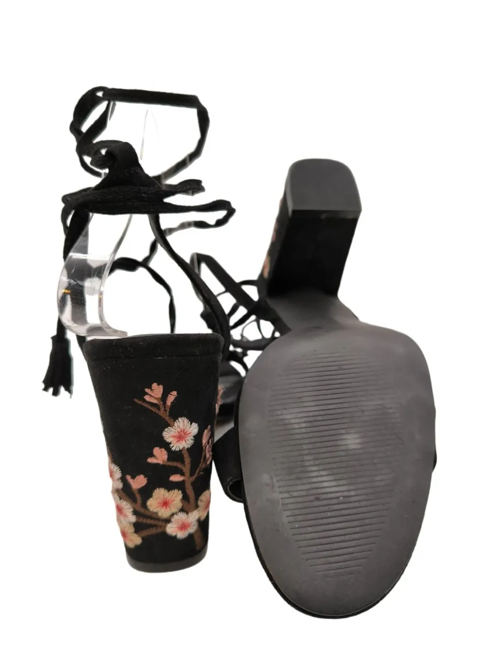 - Reserved High Heel Sandaletten, schwarz Blumenmuster