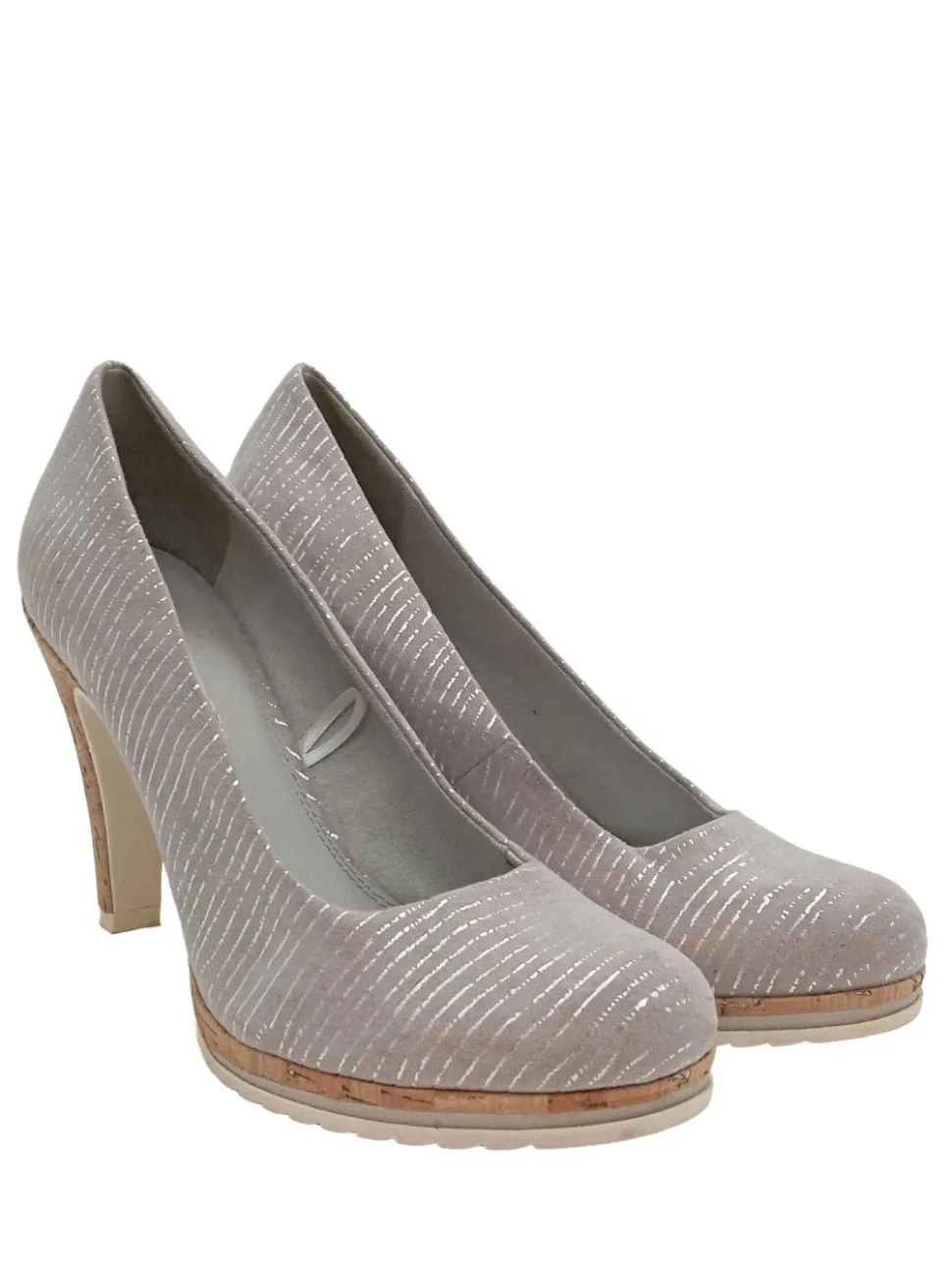- Marco Tozzi Hochfront-Pumps, hellgrau Streifenmuster