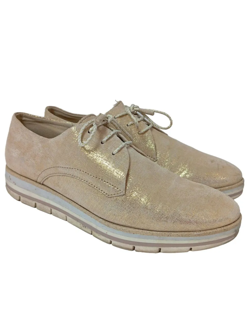 | Zustand | Gut Getragen, weist aber minimale Gebrauchsspuren auf, z. B. an der Schuhsohle, einzelne Fäden. |