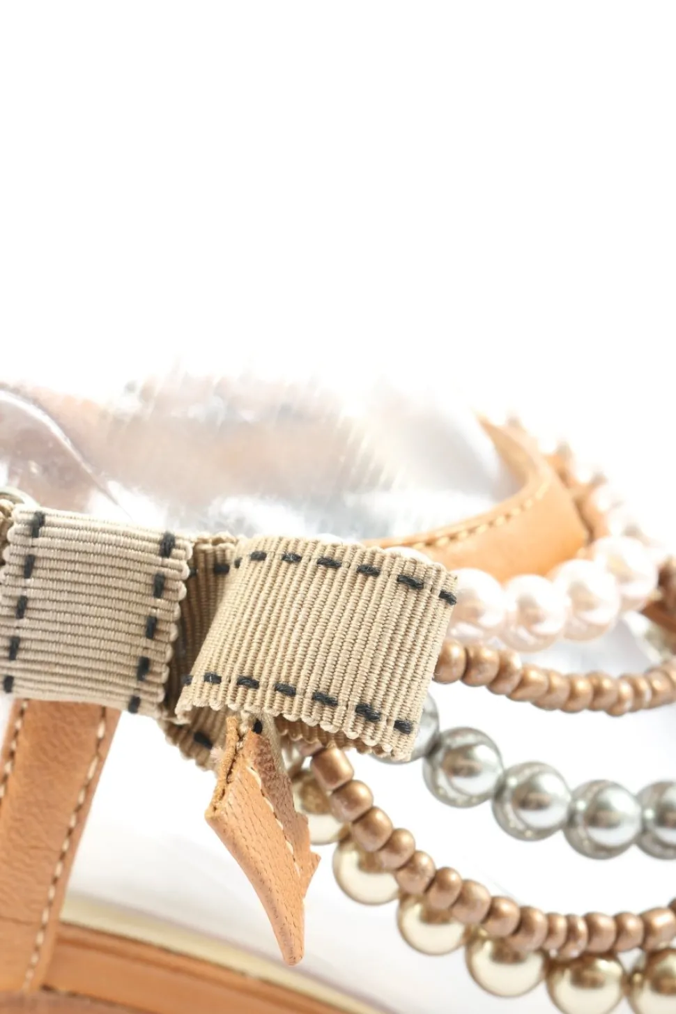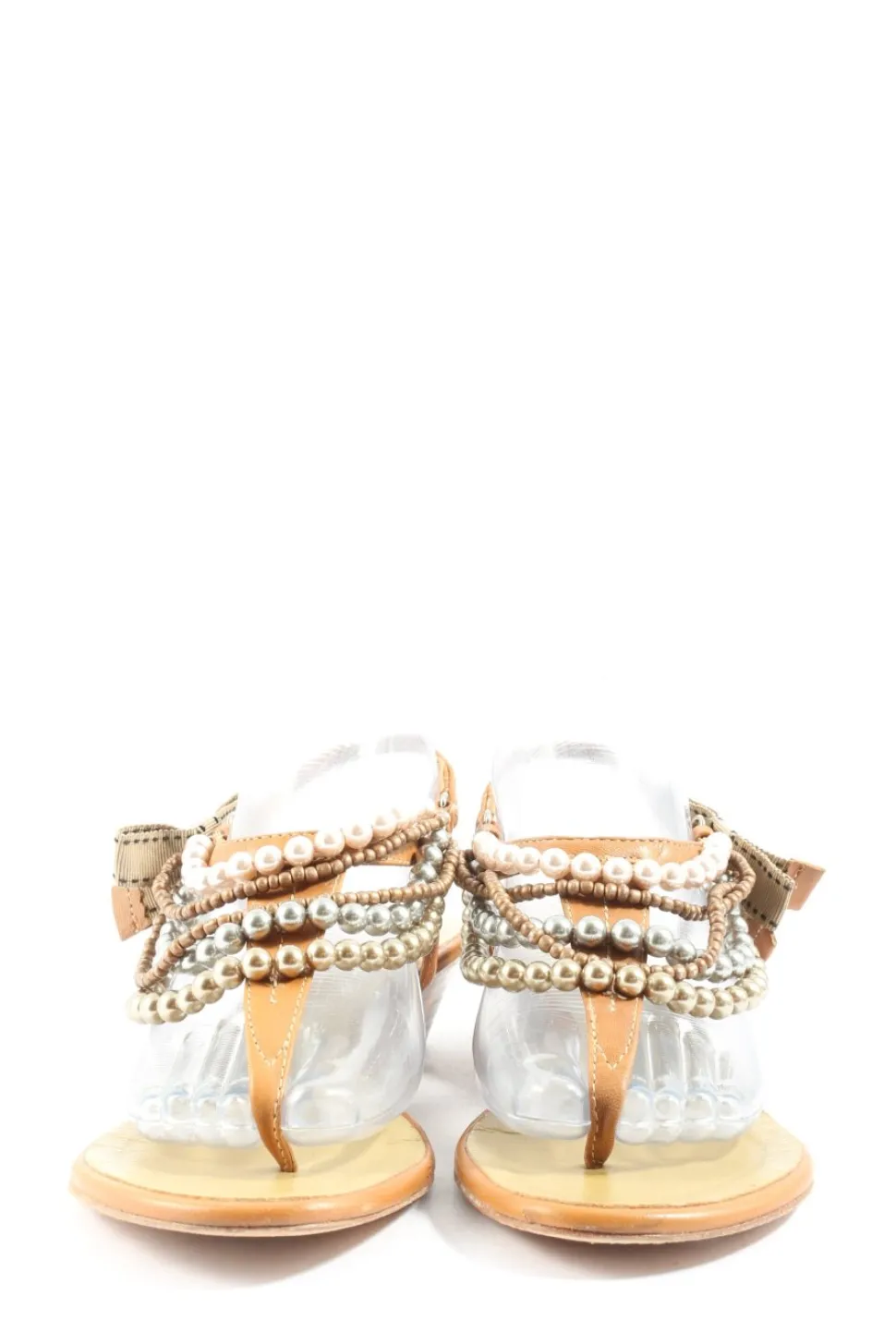 - Details: Gummizug an der Ferse hinten, Zehentrenner, Perlenverzierung, Schleifen-Detail