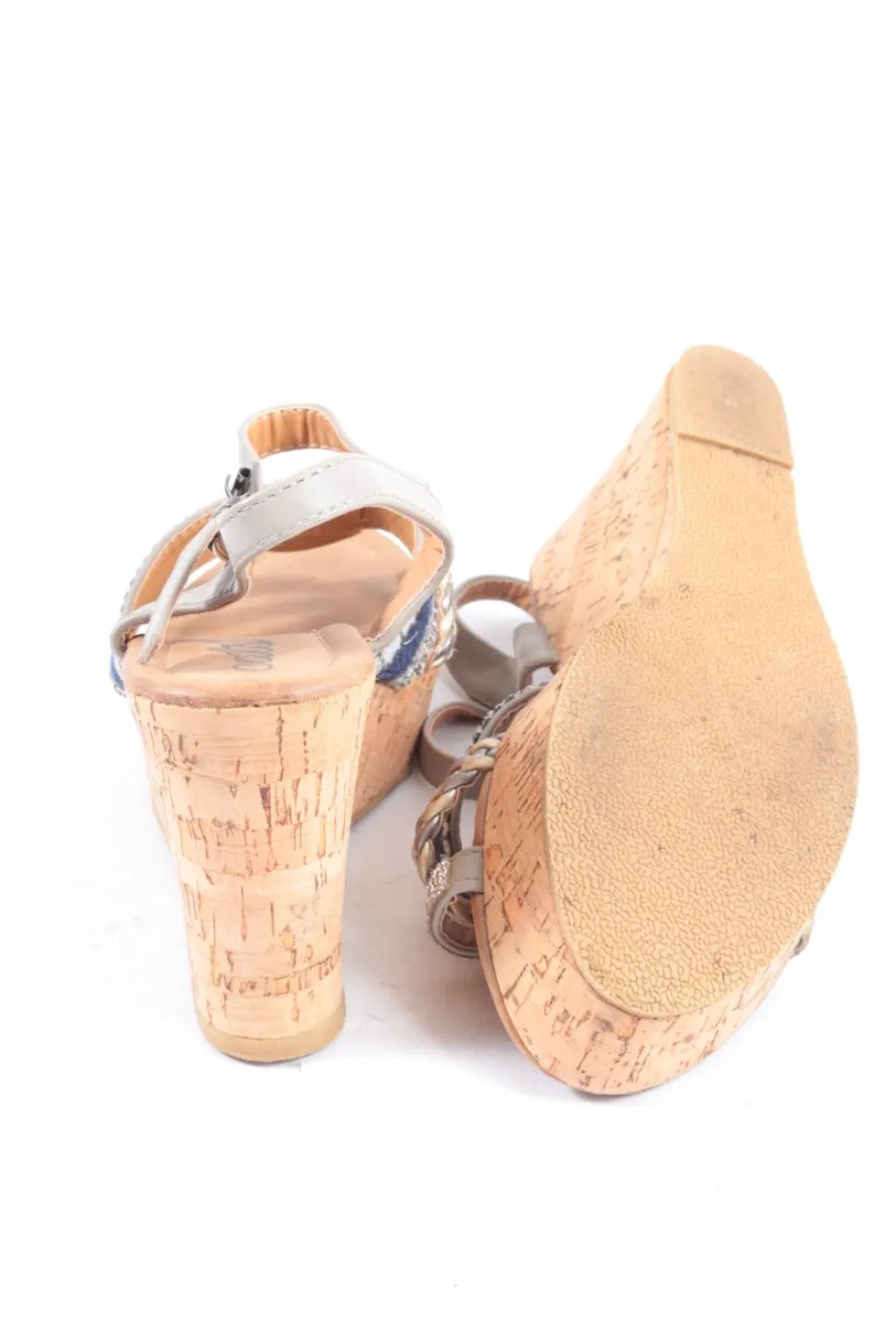 - Details: Flecht-Detail, Kork-Fußbett, Paillettenverzierung, Textil-Applikation, Zierknoten