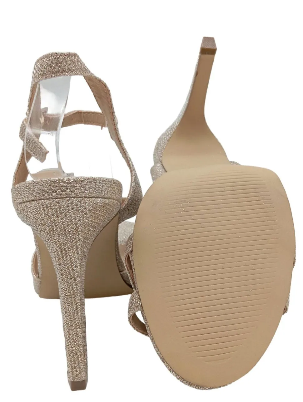 - genoppte Laufsohle, offene Schuhspitze, Riemenverschluss, Elegant, Glanz-Optik, Party-Look