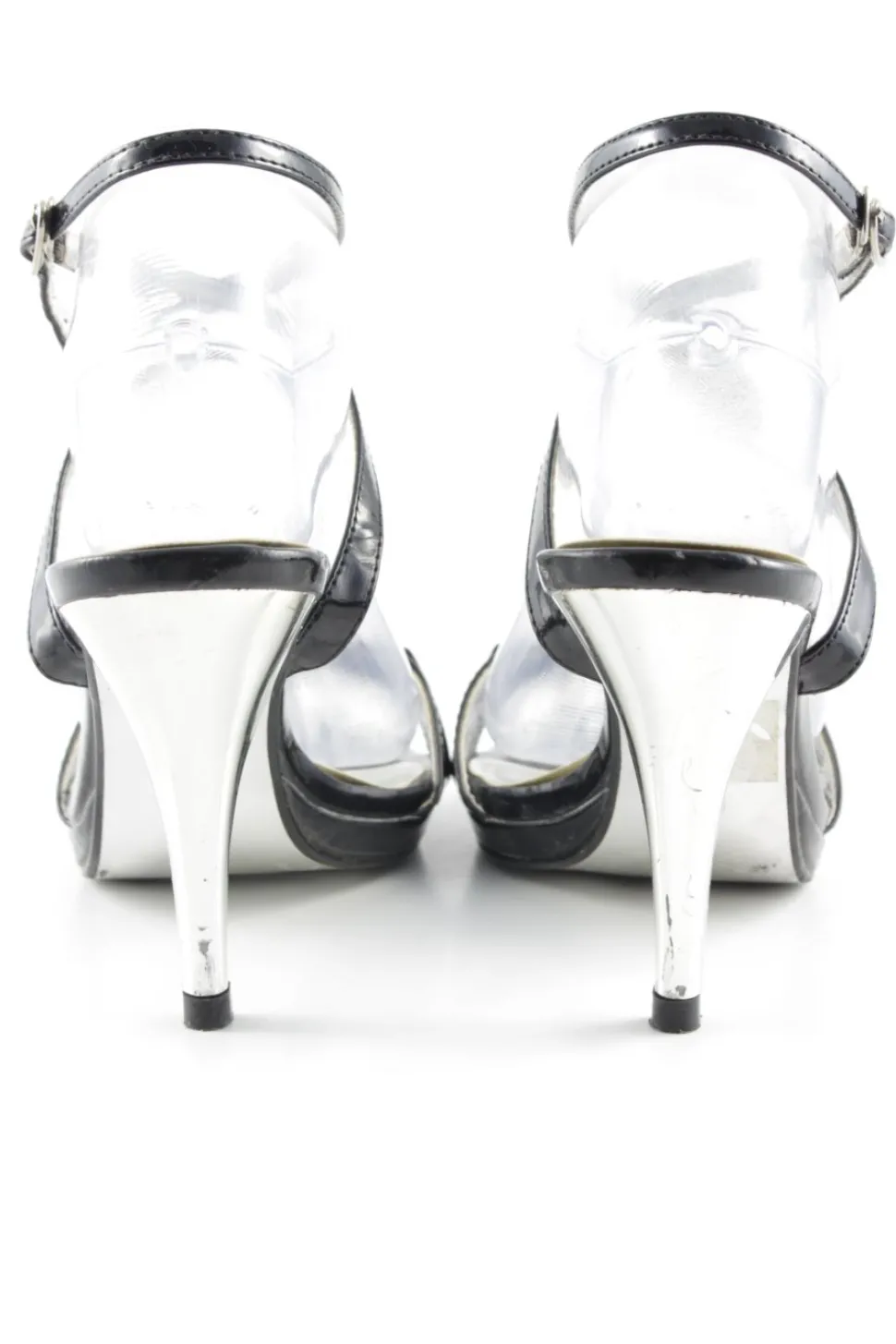 - Pfenningabsatz / Stiletto, Absatz in Metall-Optik, , offene Schuhspitze, , glänzend, Elegant, Party-Look