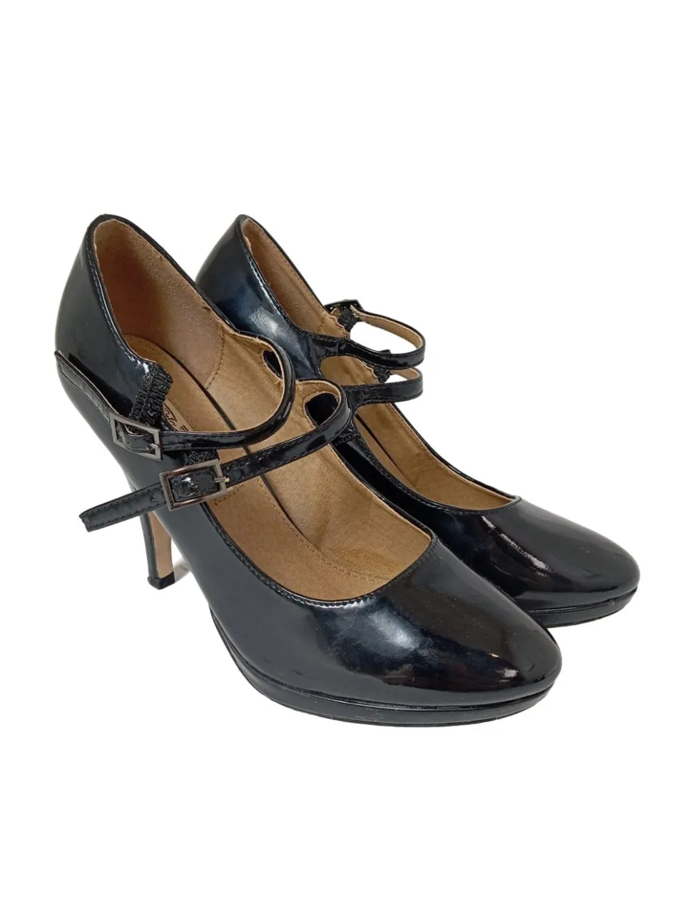 - glatte Laufsohle, runde Schuhspitze, Riemenverschluss, Schnallenverschluss, Glanz-Optik, Party-Look, Vintage-Look