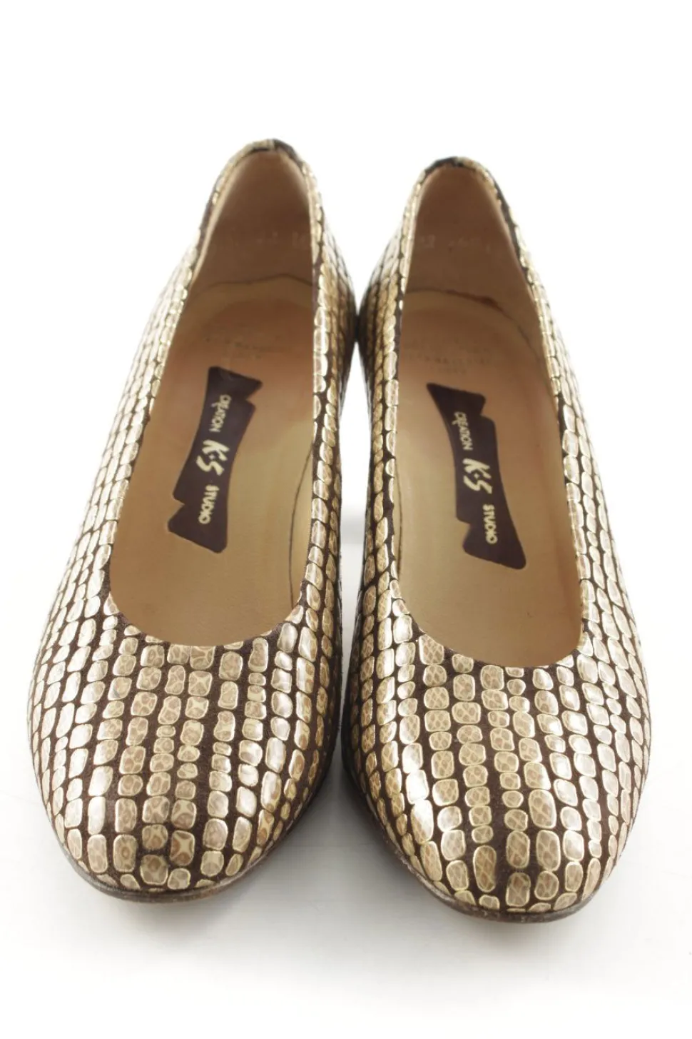 - K+S Schlüpfschuhe, dunkelbraun-goldfarben