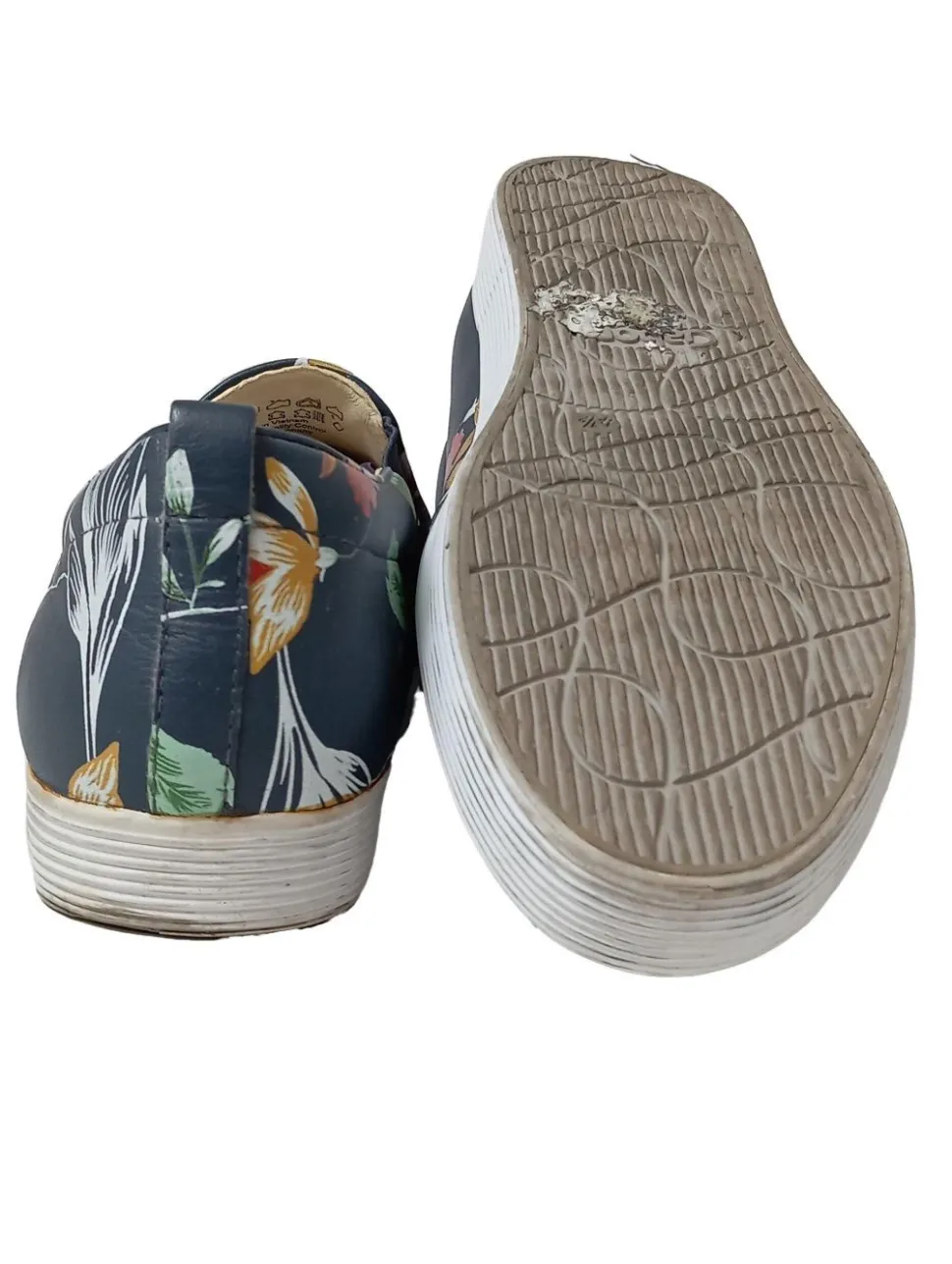 - genoppte Laufsohle, runde Schuhspitze, Schlupfeinstieg mit Elastikeinsatz, Allover-Druck, Blumenmuster, Casual-Look, Street-Fashion-Look