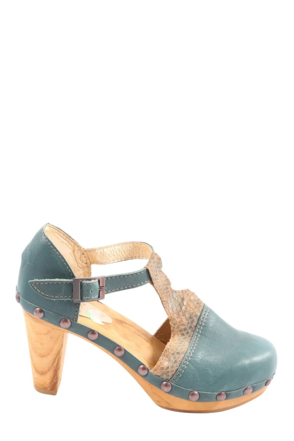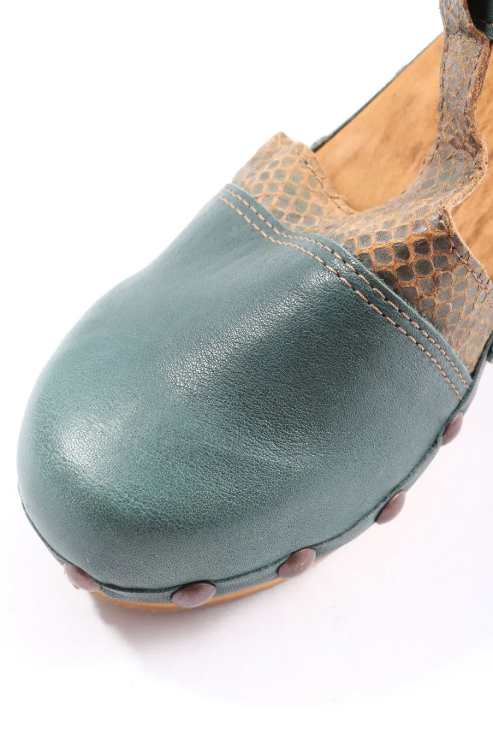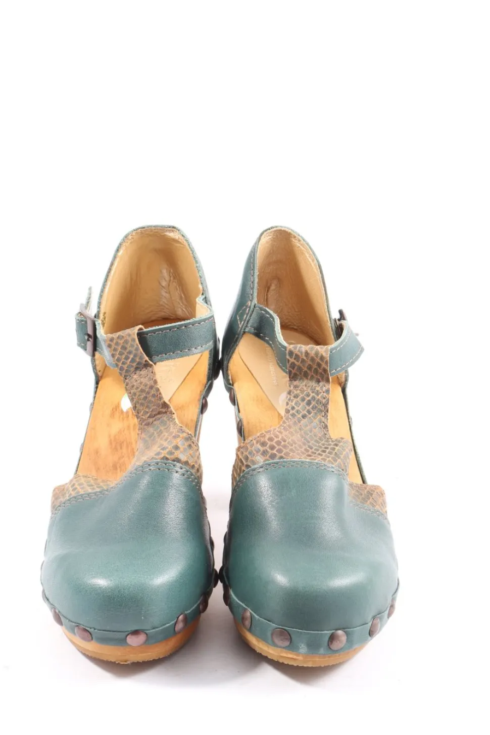 - Sanita T-Steg-Pumps, grün-braun Animalmuster