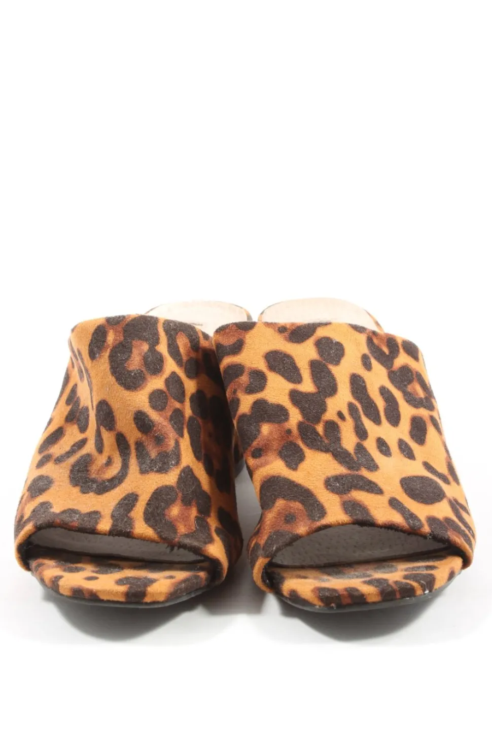- genoppte Laufsohle, offene Schuhspitze, Schlupfeinstieg, Allover-Druck, Leomuster, Casual-Look, Elegant, Street-Fashion-Look