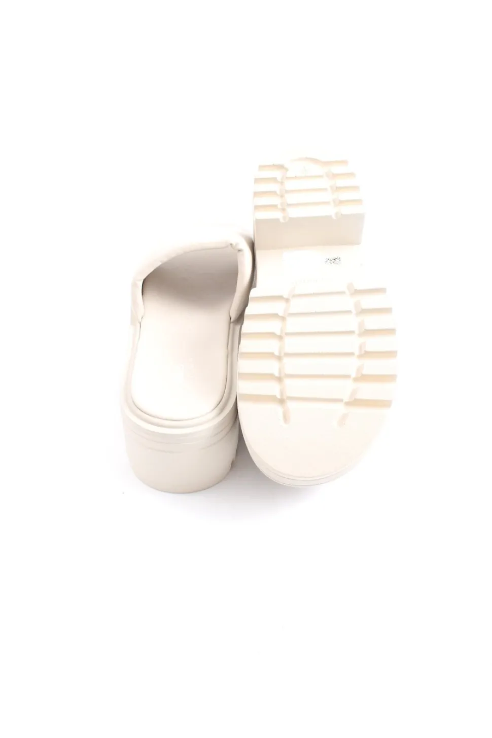 - strukturierte Laufsohle, offene Schuhspitze, Schlupfeinstieg, Casual-Look, schlichter Stil, Street-Fashion-Look