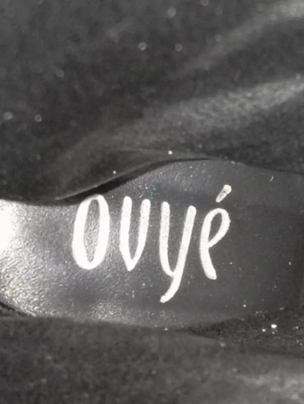 - Ovyé Absatz Stiefel, creme-schwarz Animalmuster