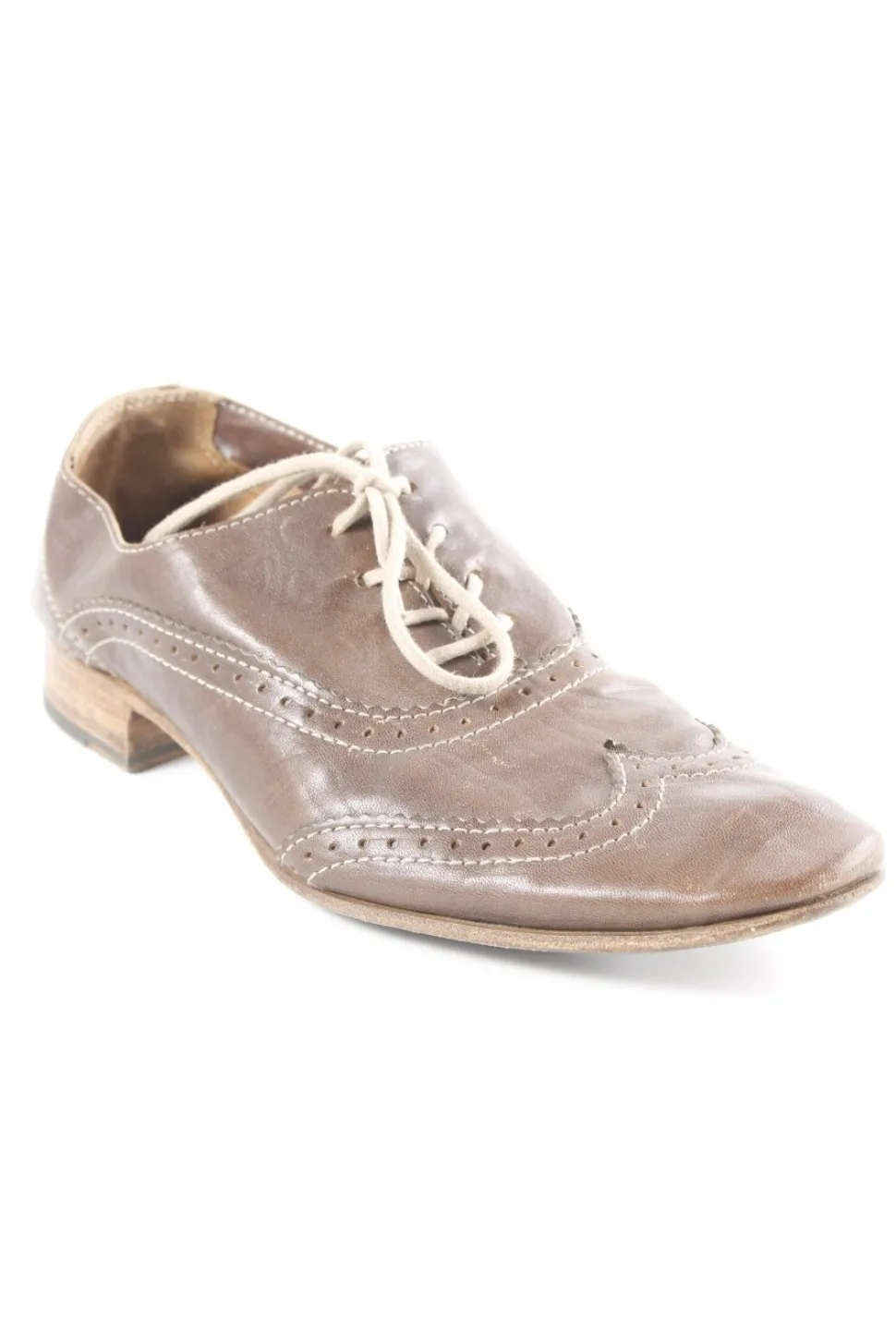 - kleiner Absatz, Absatz in Schicht-Optik, glatte Laufsohle, eckige Schuhspitze, Schnürverschluss, Casual-Look