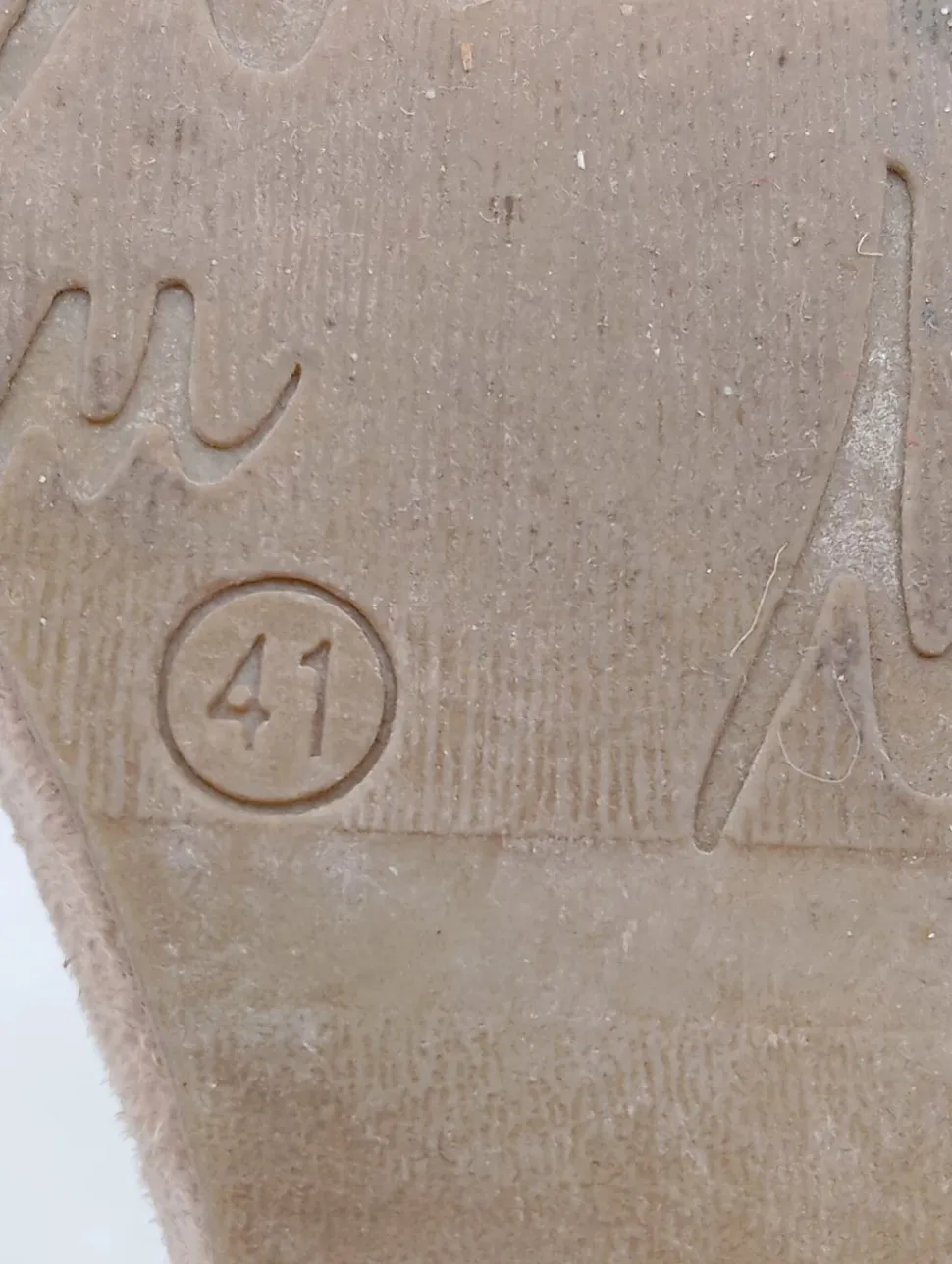 | Zustand | Gut Getragen, weist aber minimale Gebrauchsspuren auf, z. B. an der Schuhsohle, einzelne Fäden. |