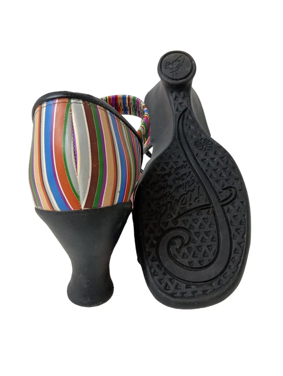 - John Fluevog High Heel Sandaletten, Streifenmuster