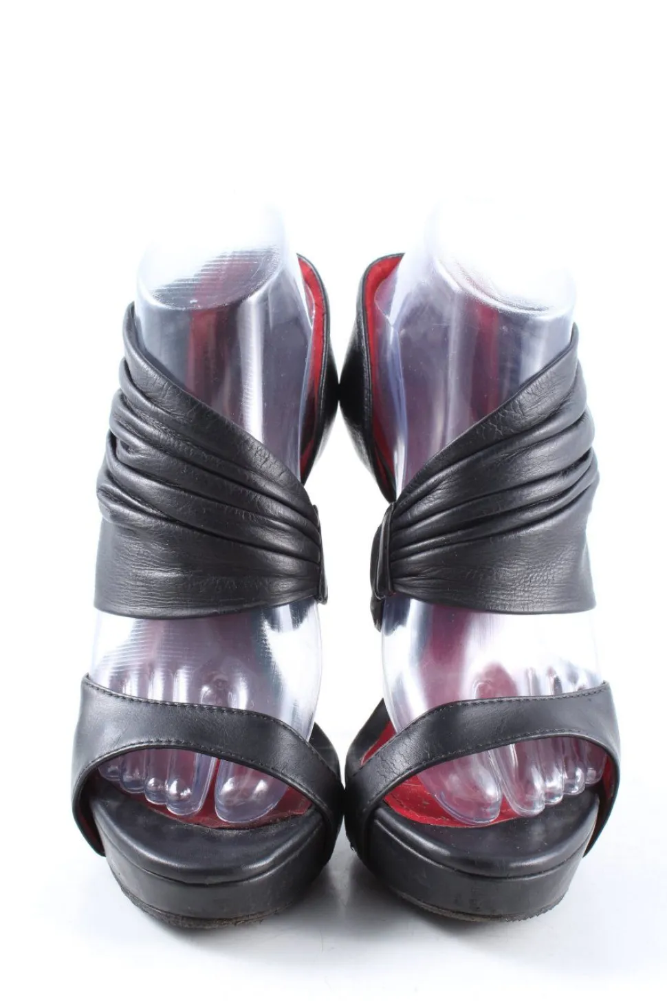 - Details: gepolsterter Einstieg, gepolstertes Fußbett, Peep-Toe-Ausschnitt, Raffungen, Teilungsnähte, Ziernähte, Nieten-Detail, Textil-Applikation