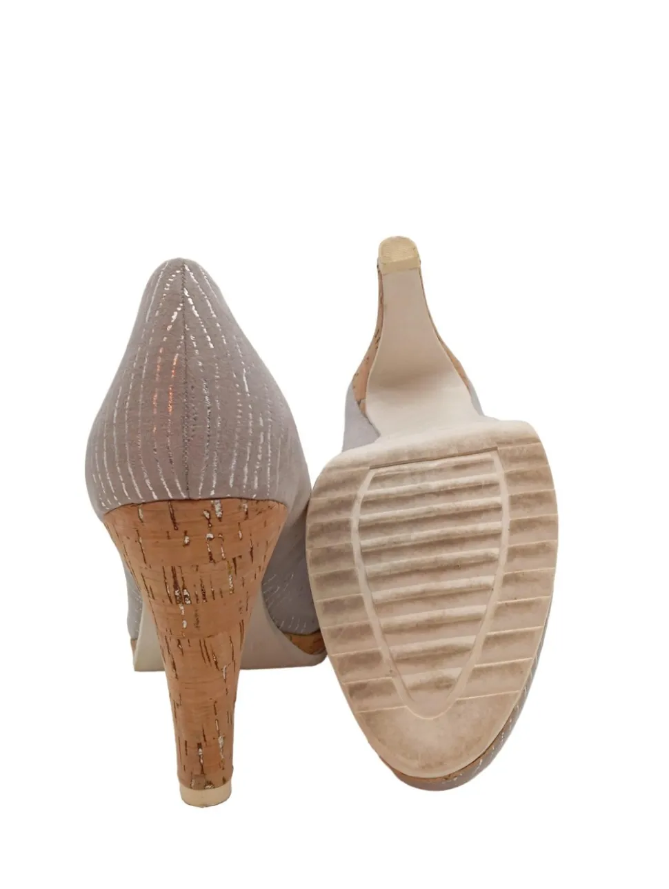 - Marco Tozzi Hochfront-Pumps, hellgrau Streifenmuster