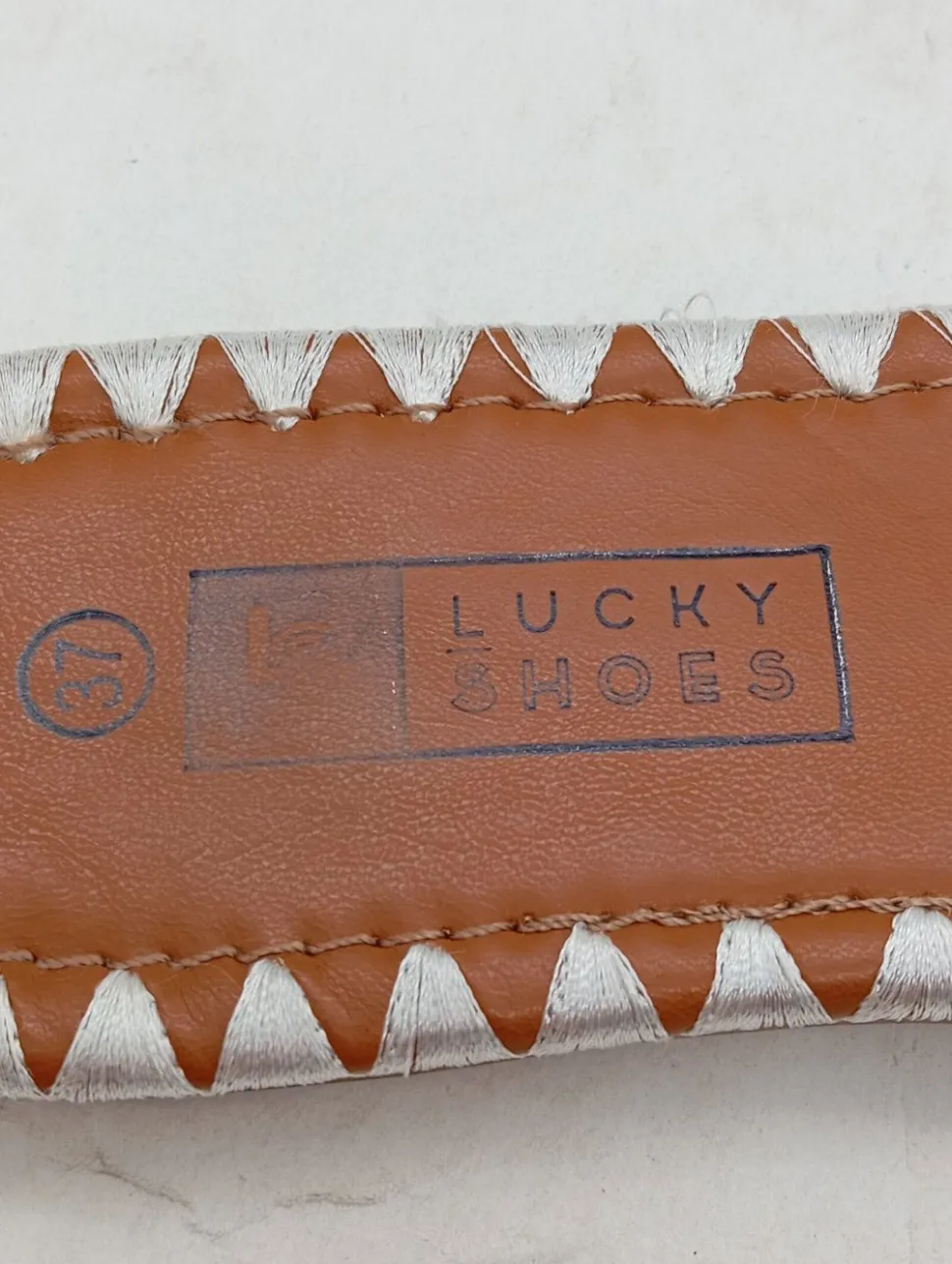 - Lucky Shoes Komfort-Sandalen, weiß Schriftzug gedruckt