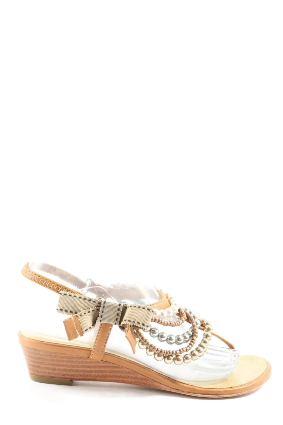 - Details: Gummizug an der Ferse hinten, Zehentrenner, Perlenverzierung, Schleifen-Detail