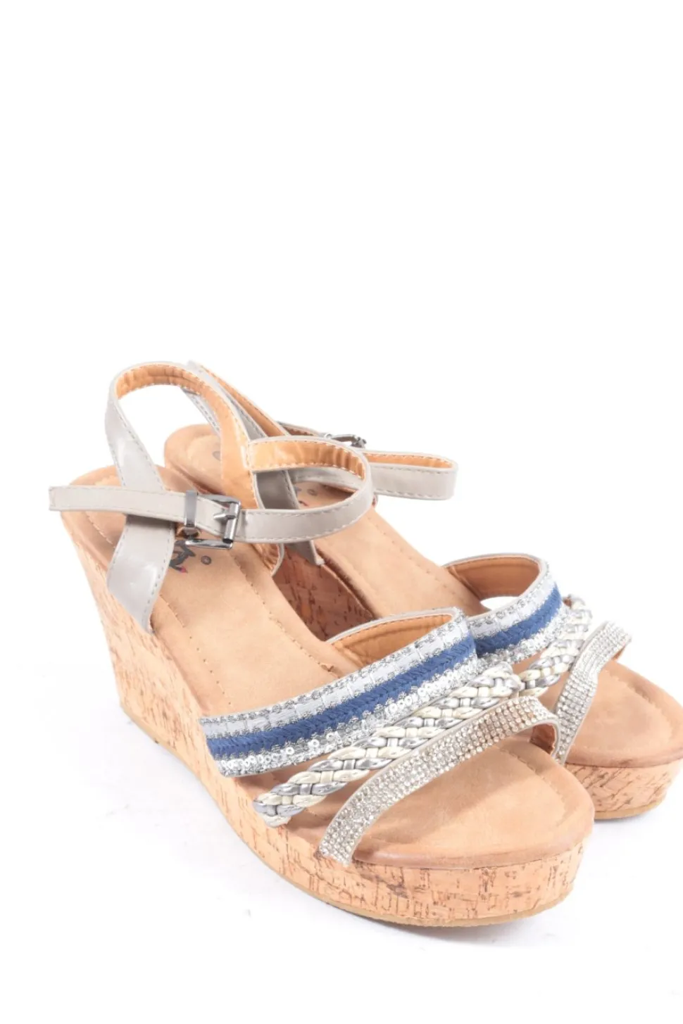 - Details: Flecht-Detail, Kork-Fußbett, Paillettenverzierung, Textil-Applikation, Zierknoten