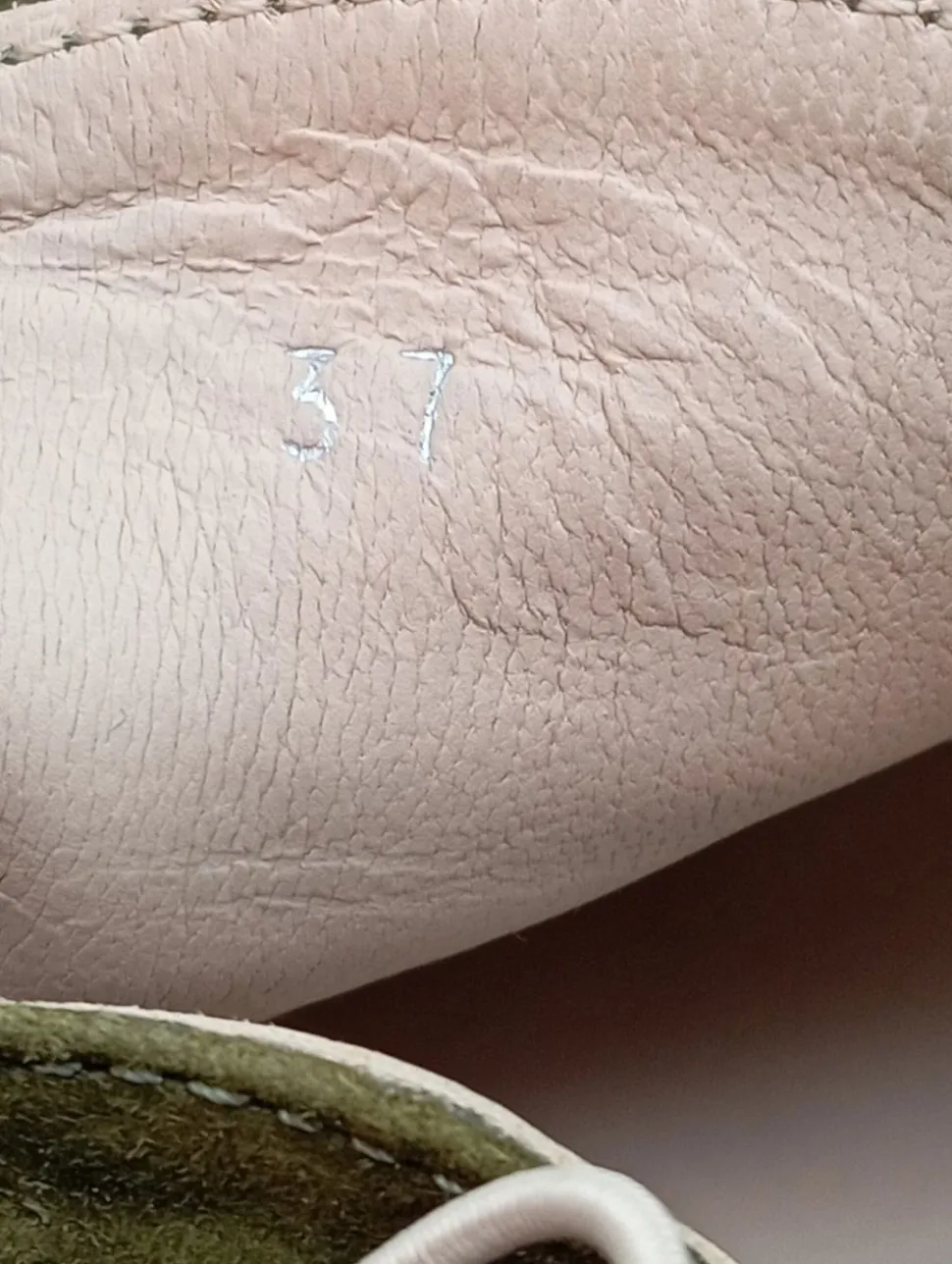 | Zustand | Gut Getragen, weist aber minimale Gebrauchsspuren auf, z. B. an der Schuhsohle, einzelne Fäden. |