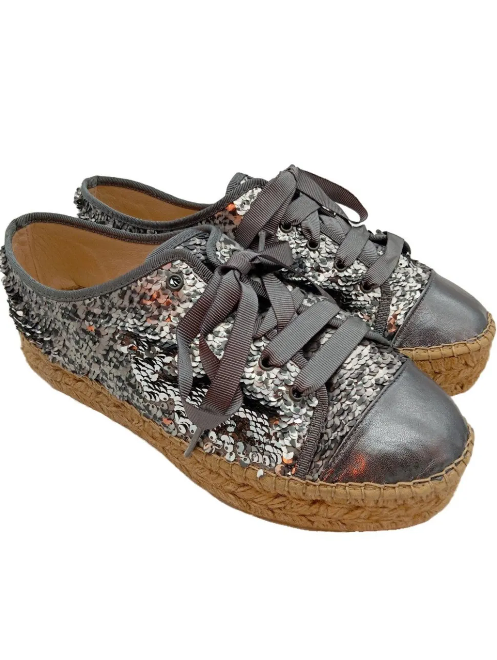 - Details: Teilungsnähte, Zehenkappe, Ziernähte, Bastelemente, Lederelemente, Paillettenverzierung, Ösen-Detail